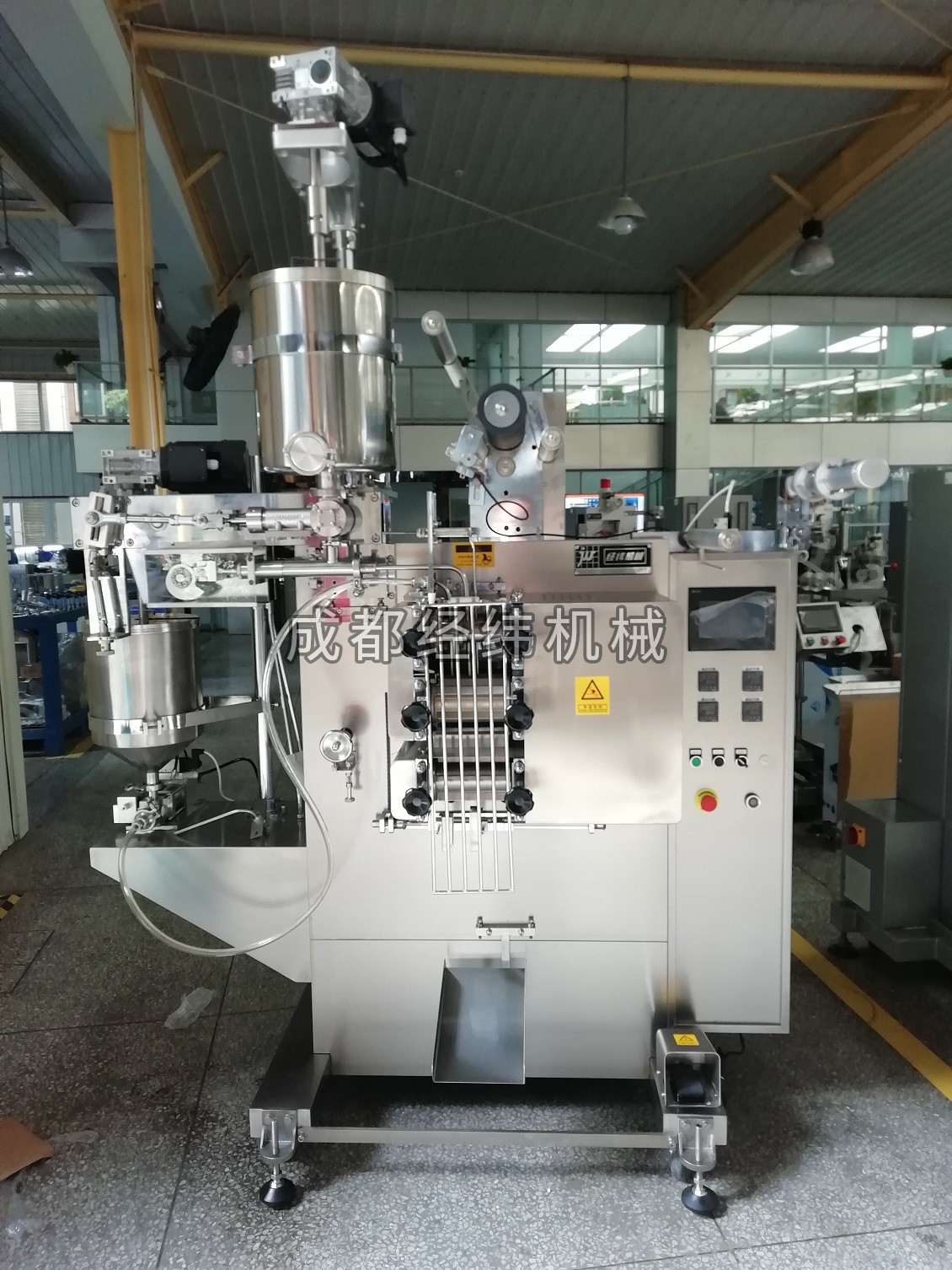 該機型是在JW-JG350AIIP型號上二次開發,采用了PLC工業計算機系統控制,通過顯示屏觸摸屏,可方便、準確地完成制袋尺寸、包裝容量、包裝速度等功能參數的調節及自動校準等功能的設置。設備采用了三段封口(第一、二段式熱封口,第三段為冷封加固封口),標準配備的計量裝置為活塞式沖程泵(P泵);也可根據包裝物料不同,可以選配LRV泵、沖程泵、電缸泵、氣動閥、角閥、電磁閥等下料系統,可實現2-3種物料同時罐裝,實現2-3列產品需求的包裝;列與列之間可以連包、分包功能。