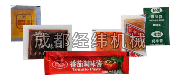 該機型是典型的小袋醬體自動充填包裝機;采用了PLC工業計算機系統控制,通過顯示屏觸摸屏,可方便、準確地完成制袋尺寸、包裝容量、包裝速度等功能參數的調節及自動校準等功能的設置。設備采用了三段封口(第一、二段式熱封口,第三段為冷封加固封口),標準配備的計量裝置為活塞式沖程泵(P泵);也可更換其他多種充填方式,如用于勻質粘體包裝的高精度海霸泵(H泵)、用于粘體連續填充的羅塔里泵(R泵)等,是常用、理想的粘稠自動填充包裝機,也能填充高溫下的被包裝物。該機動力源采用伺服電機,具有噪聲低、運轉平穩可靠、動作